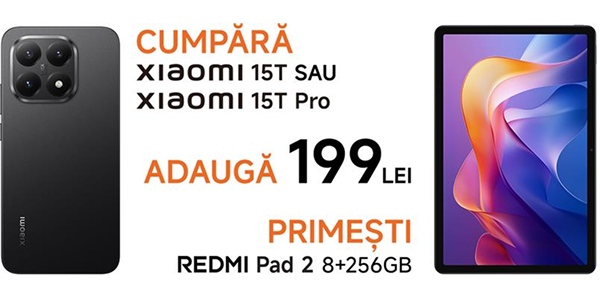 | Xiaomi 15T 12+512GB | Pret Recomandat (RRP): 3299 LEI |