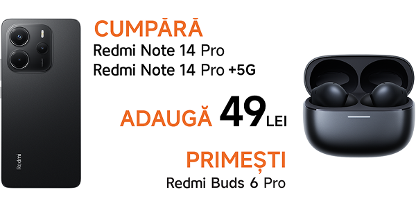 | Redmi Note 14 Pro 5G 8+256GB | Pret Recomandat (RRP): 1999 LEI |